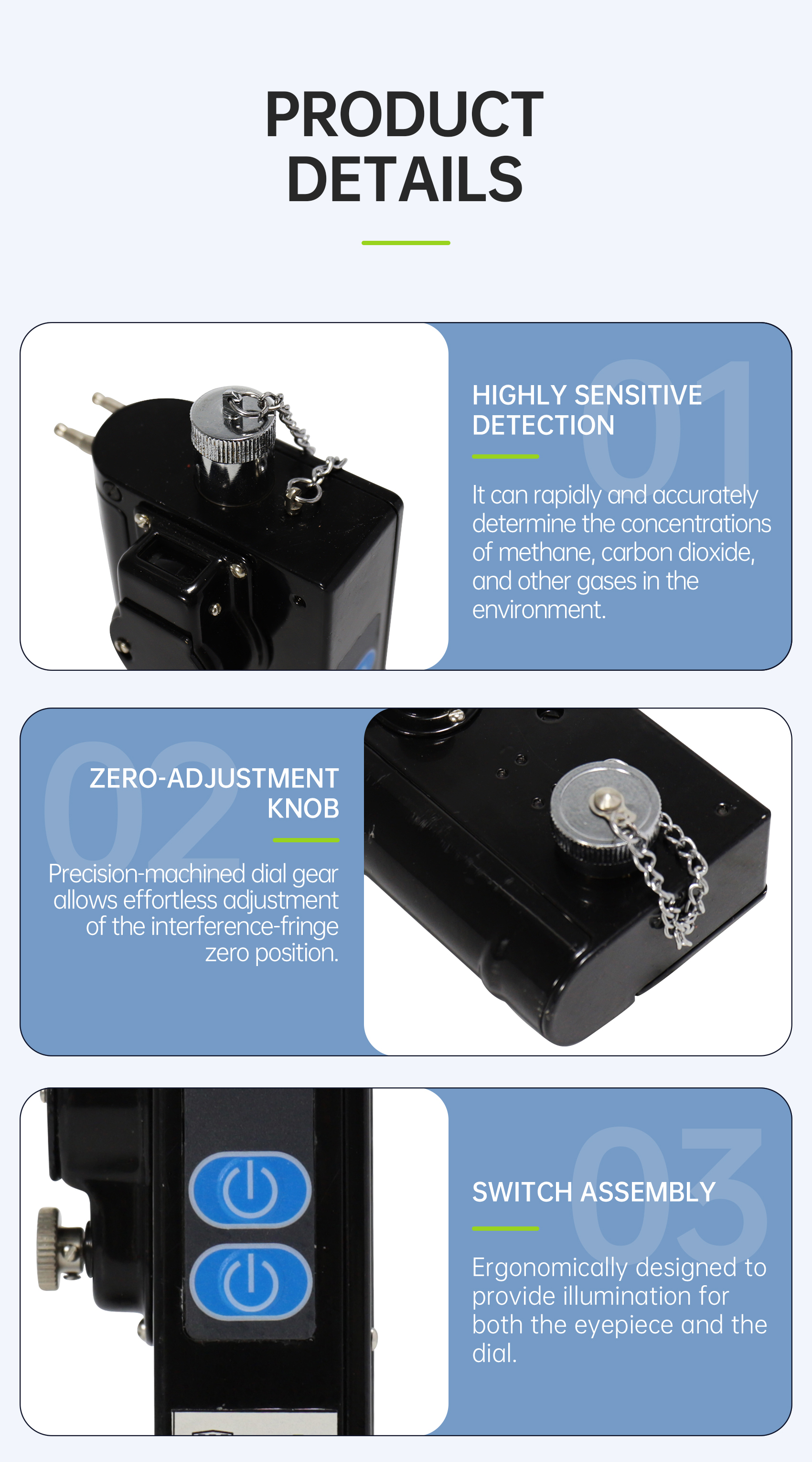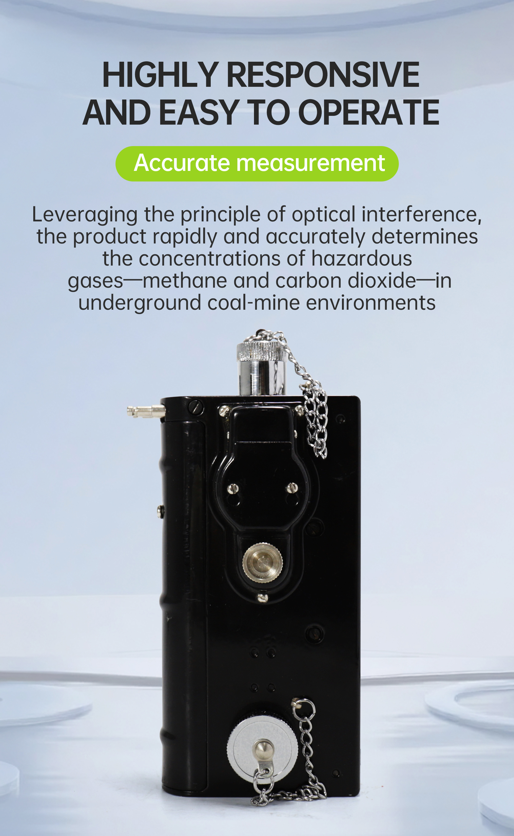 Leveraging the principle of optical interference, the product rapidly and accurately determines the concentrations of hazardous gases—methane and carbon dioxide—in underground coal-mine environments