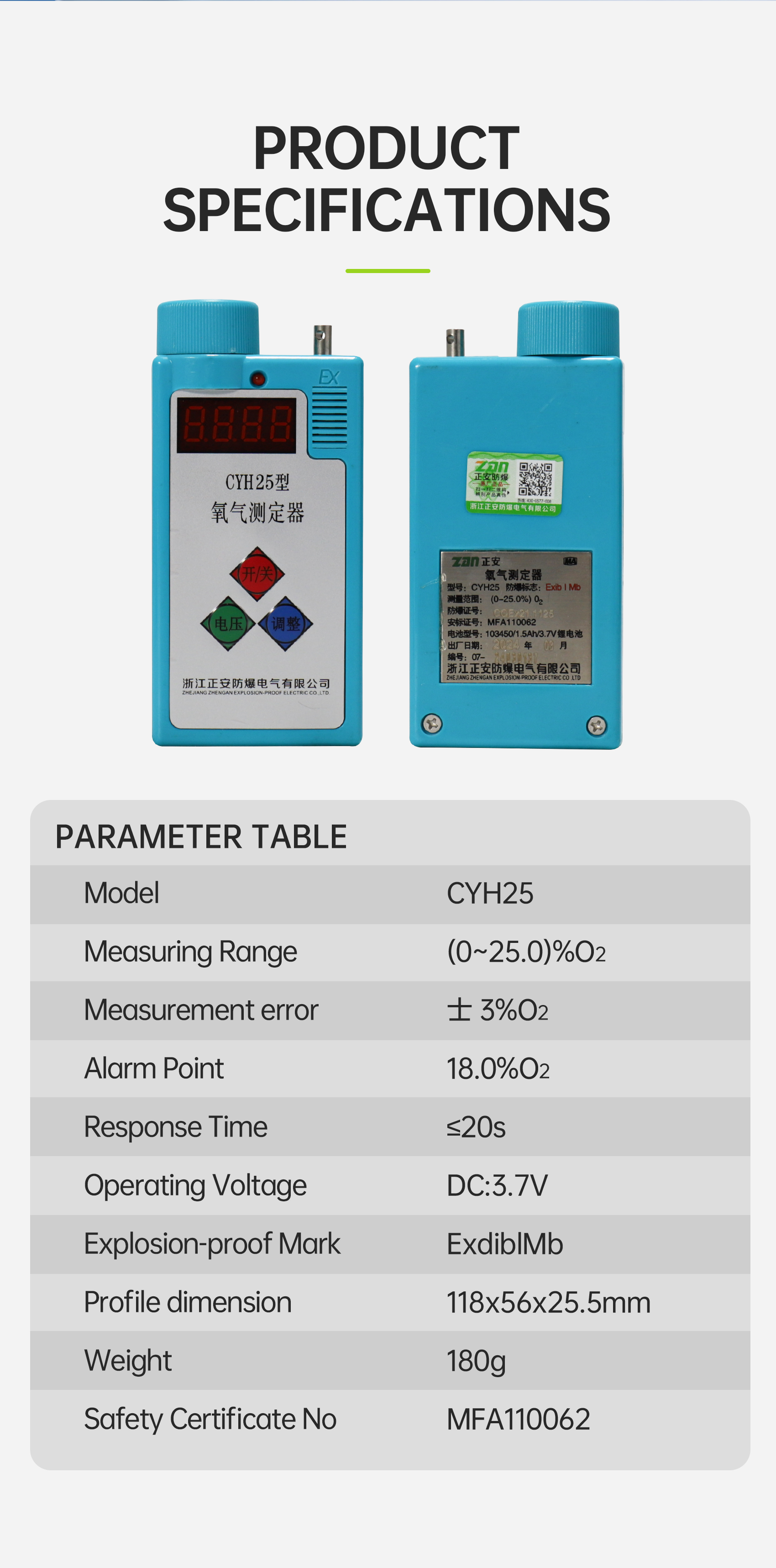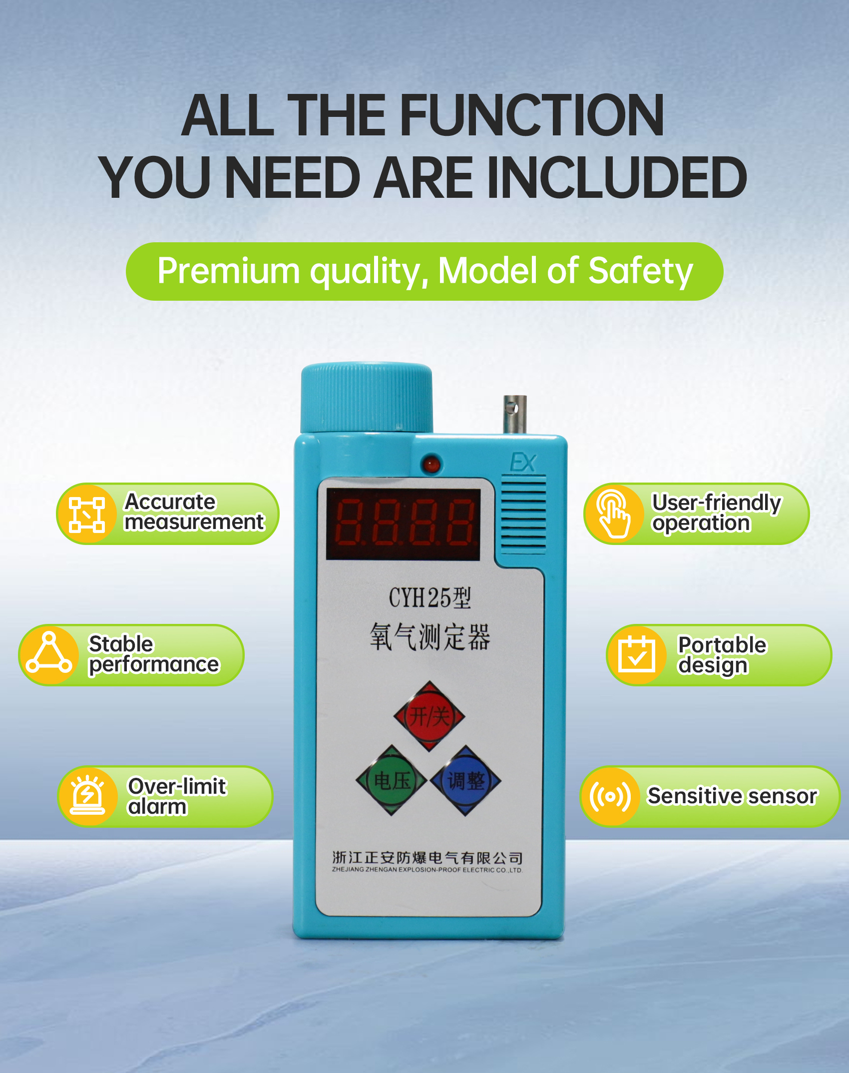This product is designed with imported electrochemical oxygen-sensitive components.