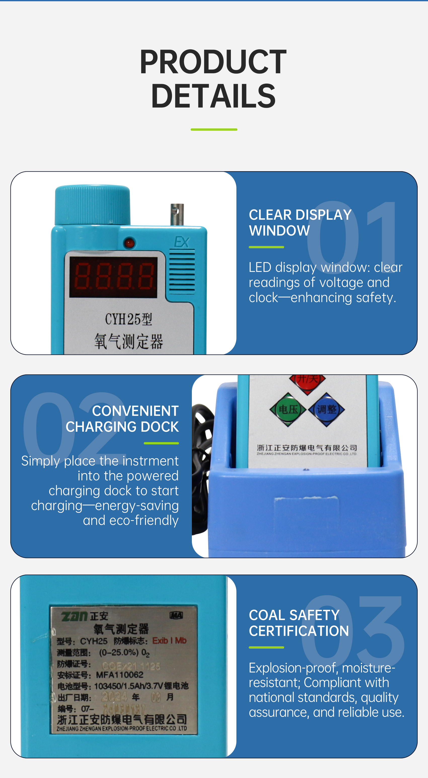 Accurate measurement, stable performance, over-limit alarm, and compact size.
