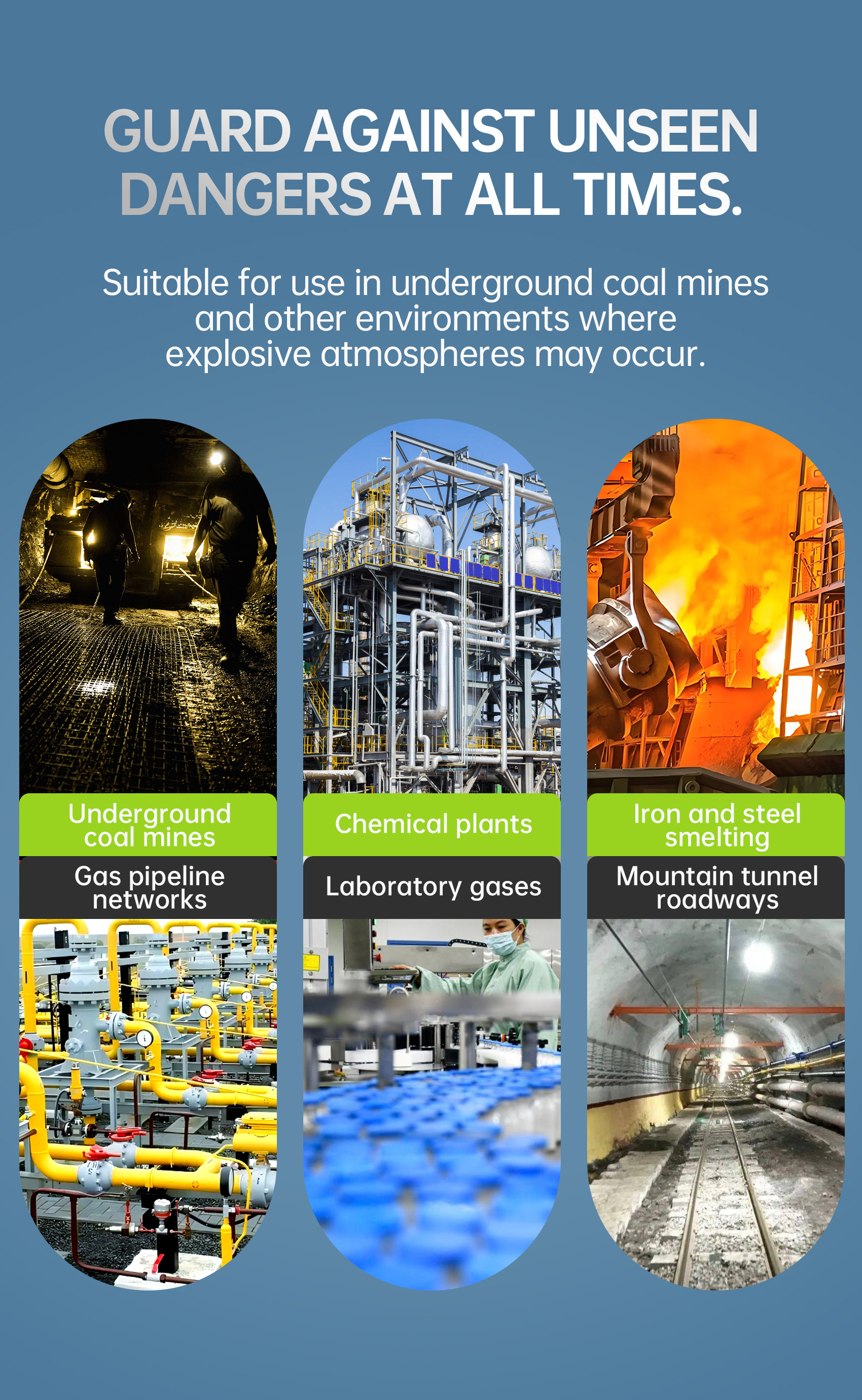 Suitable for use in underground coal mines and other environments where explosive atmospheres may occur.