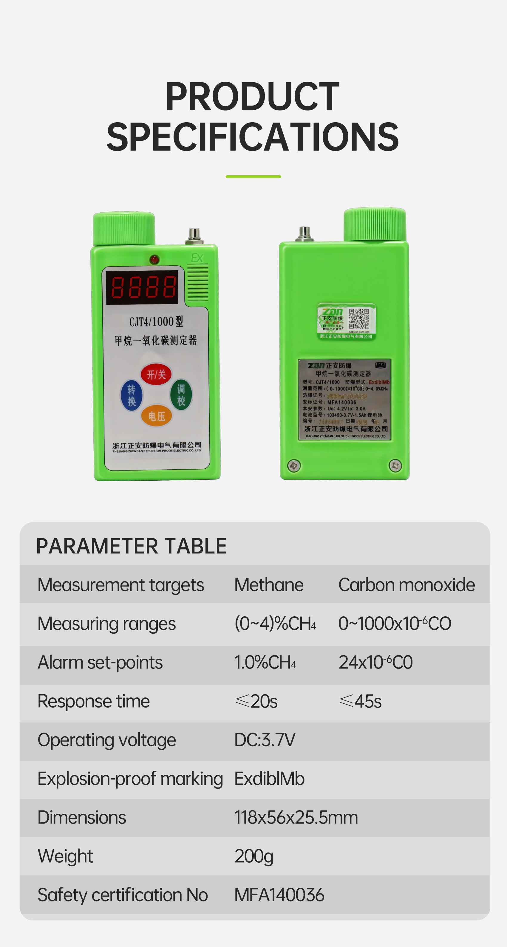 JJT4/1000 Methane and carbon monoxide detector